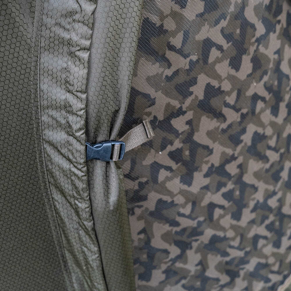 A HQ kétrétegu Brolly rendszer a HQ Dual Layer sorozat legújabb kiegészítése mely egyedi 20 000 mm0es Dura0Stop szövettel készül így a HQ kétrétegu Brolly könnyedén megbirkózik az elemekkel. A Brolly0t teljesen lapos hátsó résszel terveztük ami lehetové teszi hogy az ágyunkat hátrébb pozícionálhassuk így további helyet teremtve ezzel a sátorban. A belso réteg nem csak segít megtartani meleget és csökkenteni a páralecsapódást a hidegebb hónapokban de biztosítja a huvös homérsékletet a nyári idoszakban is egyaránt. A kétrétegu héj az egyedi camo mintázatunkkal van ellátva amit nem kell eltávolítani még a sátor elcsomagolása esetén sem. A brolly kettos nyitásirányú ajtóval rendelkezik camo hálós középso panellel továbbá hátsó ablakokkal szintén camo hálópanelekkel és az elso oldala pedig teljesen eltávolítható. A brolly esoelvezetéses csatornával is rendelkezik hogy a vizet a sátorról lefelé és oldalára irányítsa. A front oldalon 2 botrögzíto pánttal. A brolly hátulján egy hatalmas lezipzárazható hátsó ablak került elhelyezésre camo hálópanellel. A camo hálópanel lezipzározásával feltárható a kétrétegu rendszer amelyet egy szintén zipzáras panel kinyitásával érhetjük el a maximális szellozést.