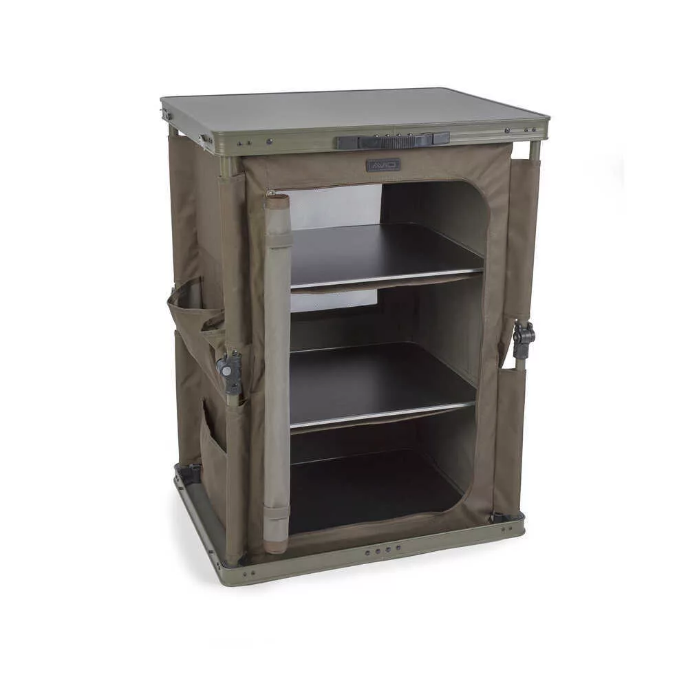 Ez a háromszintes szekrény amely egyedülálló gyorsan felállítható kialakítással rendelkezik ideális a sátorban elhelyezett feflszerelési tárgyak rendben tartásához. Akár élelmiszerrol horgászfelszerelésrol vagy más alapveto dolgokról van szó ezeket mindig biztonságban és kéznél tarthatjuk.