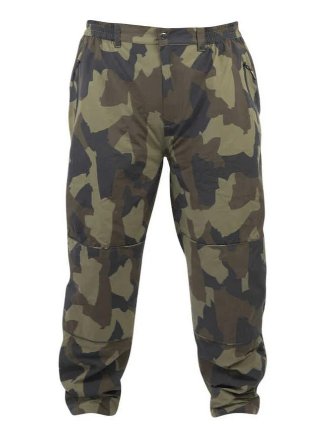 A Ripstop Camo nadrág egyedi Avid álcázott színu anyagból készült így mindig visszafogottak és környezetbeilloek maradhatunk. Könnyu puha tapintású anyaggal bélelt amely extra szélálló réteget biztosít maximalizálva a komfortérzetet legyen szó akár nyári záporról akár csípos téli szélrol valamint további kényelmet biztosít ha melegítonadrág vagy thermoruha mellett viseljük. Nagyszeru egész éves használatra különösen akkor ha kedvezotlen idojárási körülmények között vagy ha helyzet úgy hozza. Diszkréten el lehet rejteni a legkisebb helyen is a táskában.