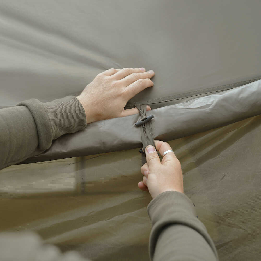 A Screen House 3D tökéletes menedékhely amely elkísér minket a hosszú távú horgásztúrákra Európa bármely részén. Ezzel a sátorral elegendo hely áll rendelkezésre az összes nélkülözhetetlen felszerelési tárgy kényelmes elhelyezésére ezért a Screen House 3D számos horgász számára nélkülözhetetlen hogy megóvjon minket a túlzott napfénytol a kellemetlen idojárástól vagy csupán hogy kellemesen töltsük el az idot a tóparton.Magas minoségu 10000 mm0es hidrosztatikus anyagból készülvalamint a hátsó és az elülso ajtó panelek kiváló minoségu szúnyoghálóval rendelkeznek. A Screen House 3D tökéletes választás fozéshez alváshoz vagy ha társaságot várunk a vízparton.