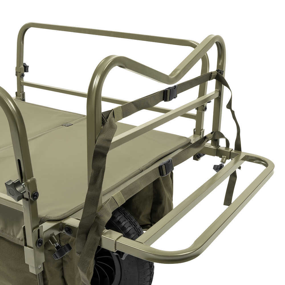 A Transit Extreme 3 kereku talicska számos olyan innovatív funkcióval büszkélkedhet amelyek minden eddiginél könnyebbé teszik a felszerelések szállítását. A változtatható szélességu oldalsó rudak lehetové teszik a felszerelés könnyu be0 és kirakodását miközben többféle rakodási konfigurációt tesznek lehetové. A két leveheto hátsó kerékkel kiegészítve a nehéz rakományok könnyu szállítása is lehetséges akár hosszú távolságokra is. A talicska három könnyen hozzáférheto kemény vízálló fedél alatti tároló rekesszel rendelkezik. Az elso kerék mindkét oldalán két zsebszeru tároló hátul pedig egy nagyobb központi tároló található. A középso raktér egy egyszeru fogantyúval kihúzható így a sátorban is tárolható az értékes felszerelés. A talicska elején egy kihúzható elso állvány található két teljesen állítható rögzíto hevederrel a legnehezebb tárgyak például csalizó vödrök vagy az ágy szállítására. A talicska fogantyúi teljesen állíthatóak hogy kényelmesen pozícióban használhassuk. Mivel a fogantyúk az elso állvány és a kerék teljesen eltávolítható a talicska szállítás közben teljesen laposra hajtható.