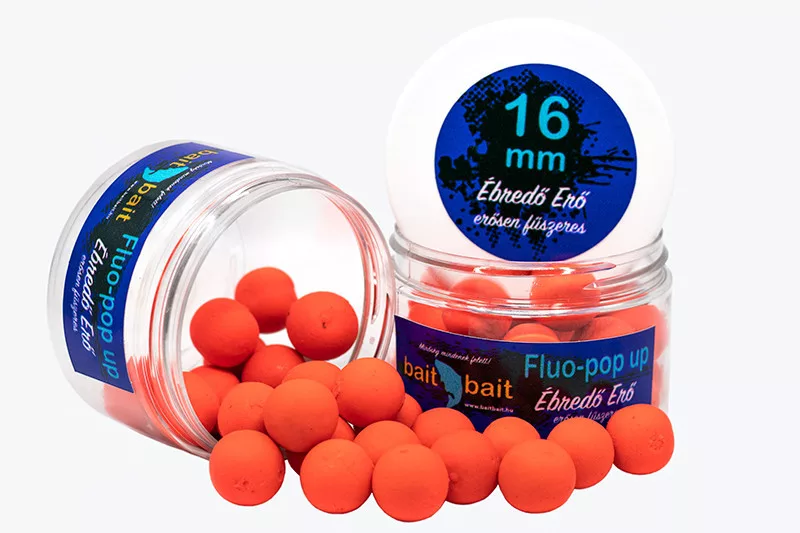 A Bait Bait Fluo Pop-Up bojlijaink nagyon élénk színekkel, erőteljes aromával, valamint hosszantartó lebegő képességgel rendelkeznek. Anyagukban extra mennyiségű étvágyfokozókat és aminókat tartalmaznak. A csalik csomagolás előtt is átesnek egy étvágyfokozó fürdőn, hogy minél aktívabban és minél frissebben várják, hogy bevessék Őket. Anyagösszetételük egyedülálló a magyar piacon, nagyon egyedi alapanyagok alkotják. Ezeket a csalikat volt a legnehezebb megalkotni, mivel itt is arra törekedtünk, hogy egy kimagasló minőségű csali kerüljön a horgászok kezébe. A fejlesztések alatt rengeteg keverési arányt kipróbáltunk, de itt is a tökéletességre törekedtünk, így sikerült ezeket a csalikat megalkotnunk. Ezen Pop-Upokat enyhén gumis állag, és szinte szétnyomhatatlan szerkezet jellemzi. A csalik szerkezete lehetővé teszi az utólagos plussz dippelést is. Ízesítés: Erősen fűszeres, fokhagymás