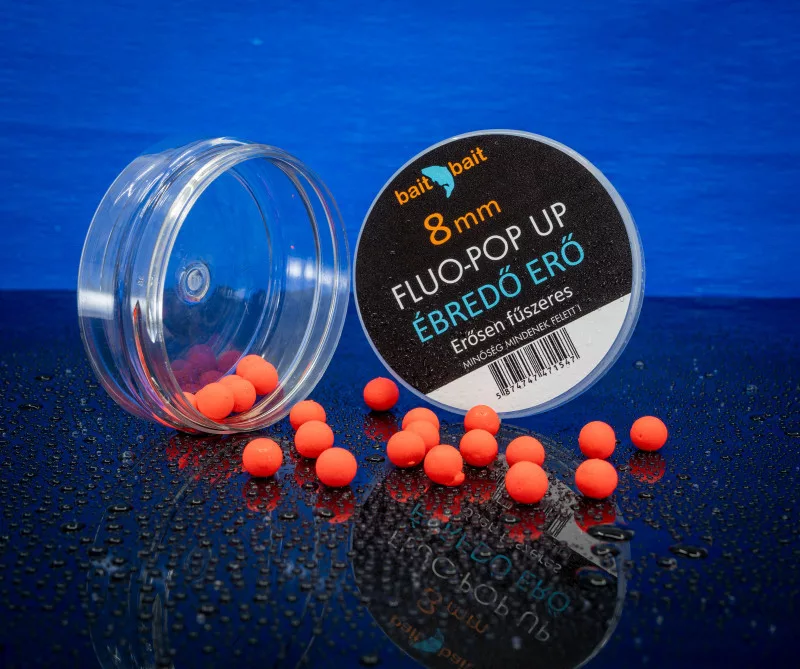 A Bait Bait Fluo Pop-Up bojlijaink nagyon élénk színekkel, erőteljes aromával, valamint hosszantartó lebegő képességgel rendelkeznek. Anyagukban extra mennyiségű étvágyfokozókat és aminókat tartalmaznak. A csalik csomagolás előtt is átesnek egy étvágyfokozó fürdőn, hogy minél aktívabban és minél frissebben várják, hogy bevessék Őket. Anyagösszetételük egyedülálló a magyar piacon, nagyon egyedi alapanyagok alkotják. Ezeket a csalikat volt a legnehezebb megalkotni, mivel itt is arra törekedtünk, hogy egy kimagasló minőségű csali kerüljön a horgászok kezébe. A fejlesztések alatt rengeteg keverési arányt kipróbáltunk, de itt is a tökéletességre törekedtünk, így sikerült ezeket a csalikat megalkotnunk. Ezen Pop-Upokat enyhén gumis állag, és szinte szétnyomhatatlan szerkezet jellemzi. A csalik szerkezete lehetővé teszi az utólagos plussz dippelést is.