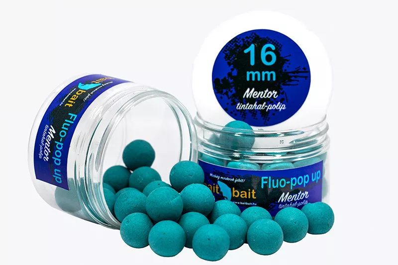 A Bait Bait Fluo Pop-Up bojlijaink nagyon élénk színekkel, erőteljes aromával, valamint hosszantartó lebegő képességgel rendelkeznek. Anyagukban extra mennyiségű étvágyfokozókat és aminókat tartalmaznak. A csalik csomagolás előtt is átesnek egy étvágyfokozó fürdőn, hogy minél aktívabban és minél frissebben várják, hogy bevessék Őket. Anyagösszetételük egyedülálló a magyar piacon, nagyon egyedi alapanyagok alkotják. Ezeket a csalikat volt a legnehezebb megalkotni, mivel itt is arra törekedtünk, hogy egy kimagasló minőségű csali kerüljön a horgászok kezébe. A fejlesztések alatt rengeteg keverési arányt kipróbáltunk, de itt is a tökéletességre törekedtünk, így sikerült ezeket a csalikat megalkotnunk. Ezen Pop-Upokat enyhén gumis állag, és szinte szétnyomhatatlan szerkezet jellemzi. A csalik szerkezete lehetővé teszi az utólagos plussz dippelést is. Ízesítés: Tintahal-polip