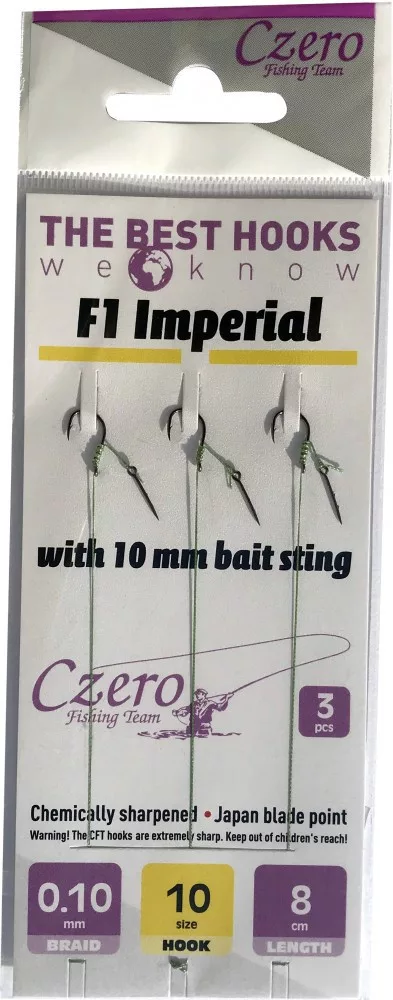 Czero F1 Imperial előkötött horog 0,10 fonott 10-es horog méret 8cm hossz 3db/csomag