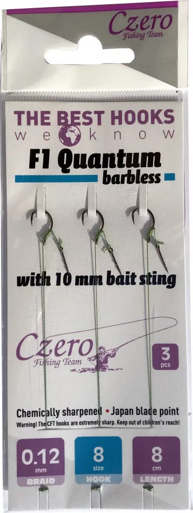 Czero F1 Quantum barbless előkötött horog 0,10 fonott 12-es horog méret 8cm hossz 3db/csomag