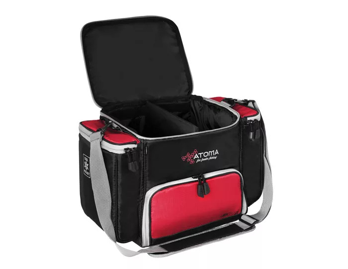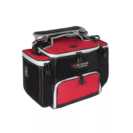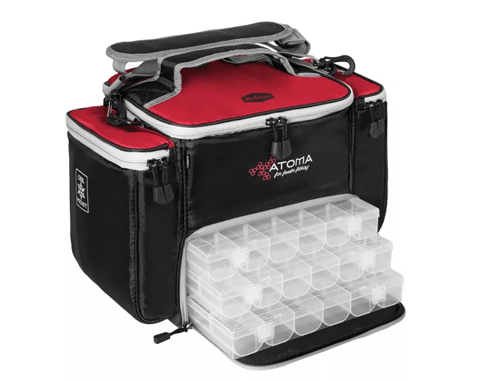 Speciális ATOMA feeder táskák, amelyeket teszthorgászunkkal Jakub Šabatával konzultálva fejlesztettünk ki, aki Csehország feeder bajnoka. A táska nagyon praktikus, kompakt méretben. De meg van mindene amivel egy jó feeder táska rendelkezik. A tetején van egy cipzáras rakodórész. Ez a tárolóhely olyan partícióval rendelkezik, amelynek helyzete megváltoztatható, mivel a falakhoz tépőzáras rögzítőkkel van rögzítve. Ez a rész alatt a legnagyobb kamra van. Az elején lévő nyíláson keresztül férünk hozzá. Itt 3 praktikus műanyag doboz található különböző ??kiegészítők számára. A táska mindkét oldalán két zseb. Az egyik hőszigetelő védőréteggel rendelkezik, amely lehetővé teszi az élő csali tárolását a táskában. Ebben a részben gond nélkül tárolhatja akár egész nap a csontit. Ha csak kukoricára horgászik, helyezze ide a hideg sört. A második oldalsó zseb egy klasszikus kialakítást kapott, mely a kisebb tartozékok tárolására szolgál. Az ATOMA táskát egy praktikus fogantyúval szállíthatja, vagy a vállpánt segítségével, amelyet automatikusan megtalál a csomagban. A táska kiváló minőségű, masszív cipzárokkal ellátva. Az ATOMA táskához plusz B-06 dobozok szükség esetén vásárolhatók. Műszaki paraméterek: Típus: Delphin ATOMA méret. XL Méret: 41x30x25cm Felső rakodórész mérete: 28x23x7cm Műanyag dobozok mérete: 27x18x4cm ( B-06 dobozok szükség esetén vásárolhatók) Oldal zsebek mérete: 20x25x7cm