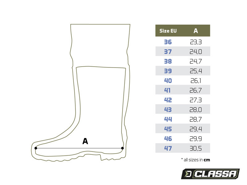 A tartós és stabil talppal rendelkező gumicsizma lehetővé teszi a kényelmes gázolást különféle körülmények között. A csizma a könnyebb levétel érdekében sarokkiemelkedést is tartalmaz.