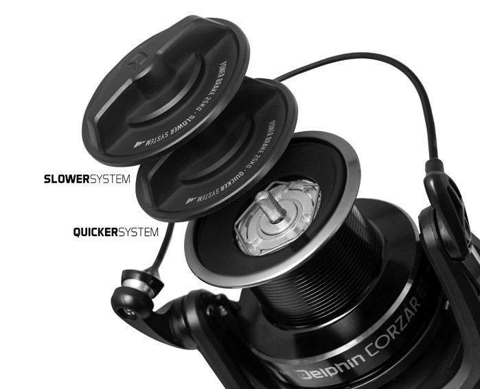 A CORZAR a Delphin cég nagy kapacitású pontyozó orsóinak családjába tartozik, amely kitűnik kimagasló kialakításával. Alapja egy masszív orsótalp, amely nagyon erős és tartós műanyagból készül. A orsó belsejében csigatengely található, amely golyóscsapágyakkal (6 + 1) kombinálva biztosítja a zavartalan, sima futást és a hosszú élettartamot. A CORZAR úgynevezett "power" fékkel van felszerelve, amelynek fékezőereje tekintélyes 25 kg-ig terjed, és az orsóval két különböző fékcsillagot is kap. A "Quicker system" jelöléssel ellátott fék lehetővé teszi, hogy egy fordítással teljesen meghúzza, míg a "Slower system" a kirohanó halak fékezése sokkal gördülékenyebb és lassabb. Az anti-reverz rendszerrel együtt a CORZAR tehát lehetőségek széles skáláját kínálja a halak fárasztása során. Az orsó előnyei közé tartozik a felkapókar biztosító eszköz is, amely megakadályozza, hogy a felkapókar akaratlanul lecsapódjon dobás közben. A fém dob nagy mennyiségű zsinórt képes befogadni, ami igazán sokoldalú orsóvá teszi. A csomag a két fékcsillag mellett két tartalék hajtókar csavart is tartalmaz.