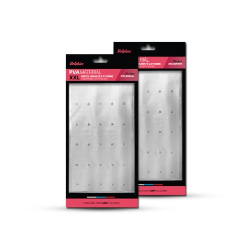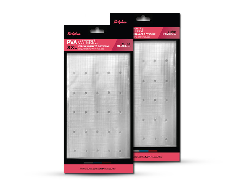 A szlovákiai Delphin gyártmányú, extra nagy méretű, négyszögletes, vízben oldódó tasak háló a pelletből, bojlilból, kukoricából vagy más partikelből álló száraz csalikeverék elhelyezésére szolgál. A tasakok széles körben használhatók pl. ponty, harcsa, amur stb. horgászathoz... A tasakba csomagolt csali a horgászhelyen a fogós csali mellé kerül elhelyezésre. A PVA tasak a vízhőmérséklettel egyenes arányban feloldódik, és a csali közelében kioldja az etetőkeveréket, amivel a horgászott halak számára jelentősen növeli annak vonzerejét. Extra nagy méretének köszönhetően az etetés helyére jóval nagyobb mennyiségű etetőanyag helyezhető el, mint a szokásos méretű tasakok esetében. A tasakok maximális kapacitása 1,5 kilogramm csali, aminek köszönhetően az adott horgászhelyek masszív és pontos beetetésére hivatottak! Ez jelentősen növeli a kapitális hal odavonzásának esélyét!