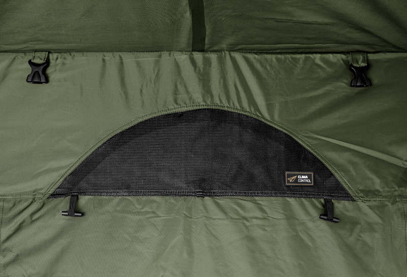A sátor elején az ajtón kívül két ablak is van. Mindkettő szúnyoghálóval védett, valamint lehetséges áttetsző fólia ablak vagy textília fedés is. A fólia ablakok a csomagolás részét képezik, így nem kell külön vásárolnia! A YURTA NEO modellnél gondoltunk a jobb szellőztetésre és beépítettük a mi általunk tervezett CLIMA CONTROL rendszert. Ez a rendszer két szellőztetőből áll átellenes oldalakon (a bejárati ajtó és a hátsó ablak fölött). Ennek az átgondolt rendszernek köszönhetően be lehet biztosítani a friss levegőellátást, akkor amikor nem lehet szellőztetni a nagy ablakok segítségével. Biztosan értékelni fogja főleg éjszaka, mikor csökkenti a páralecsapódást. Az egész rendszer könnyen kezelhető a sátor belsejéből.
