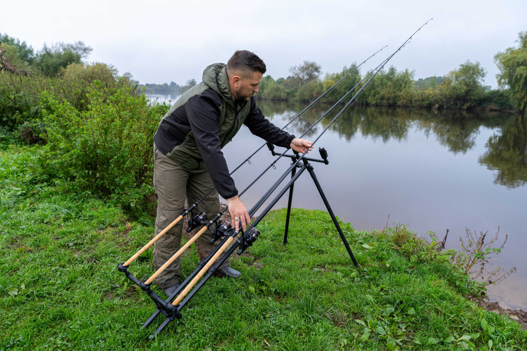 A csavarodásgátló formaterv és a cam0lock rögzíto rendszer együttes használata eredményezi hogy ez a 3 botos tripod állvány maximális stabilitást és sokoldalú felhasználást biztosít a horgászok számára.Az ikerkeret használat közben meghosszabbítható de a cam0locks rendszernek köszönheto az elpakolása gyerekjáték egy igazik kompakt tripod. Az állvány súlya mindössze 21 kg szállítása igazán könnyu.A vastag 3 botos buzz bar kereszttartók rögízto elemei a gyors beállítást és elpakolást tesznek lehetové. A két pontos rögzítés tökéletesen megszunteti a csavarodást és garantálja a megfelelo egyensúlyt is. A hátsó kereszttartót úgy terveztük hogy elegendo helyet biztosítson 3 nagy méretu orsó egyszerre történo használatához. Az elso lábak szinte bármilyen szögben állíthatók és a cam lock rögzítési megoldásnak köszönhetoen a magasságot is lehet álltani.A lábak hossza 1 m0tol 185 m0ig állítható. Hordtáskával együtt kerül forgalomban.