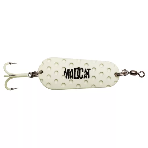 Ez a harcsázó támolygó kanál két lemezből áll, az egyikük furatokkal van ellátva az extra vibrációért. Karcsú formája miatt ideális a gyorsan folyó vizekre. Hihetetlenül erős és éles, hármashoroggal szerelve. MADCAT A-STATIC kivitelben: antisztatikus, gumi bevonattal, hogy minimalizálja a fém elektromos mezejét, ami riasztja a harcsát.Figyelem: a horgon levő gumi bevonat lekophat több hal fogása után!