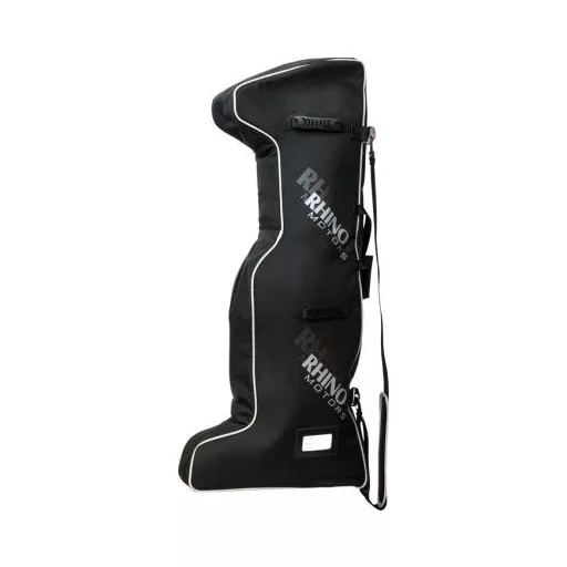 A kényelmes hordozófogantyúk és az állítható vállpánt megkönnyítik a szállítást, a beépített név- és adatcímke-tartó pedig egyszerű azonosítást biztosít utazás közben. A kiváló minőségű, strapabíró cipzár és a vízálló anyaghasználat megbízható védelmet nyújt, így a táska nemcsak Rhino motorokhoz, hanem más kompakt elektromos motorok szállítására is alkalmas.