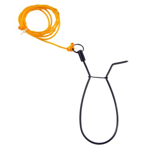 A bilincs rugalmas acélból készült, erős zsinórral rögzíthetjük a parthoz.