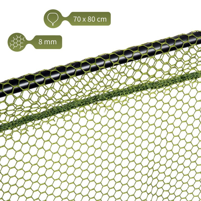 Megerősítésre került a keret az extrém tartósság érdekében, hiszen ez kapja a merítés során a legnagyobb terhelést. A másik kulcsfontosságú pont egy jó merítőnél, az a csatlakozás a nyélhez, ide egy erős, öntött középső adapter került.