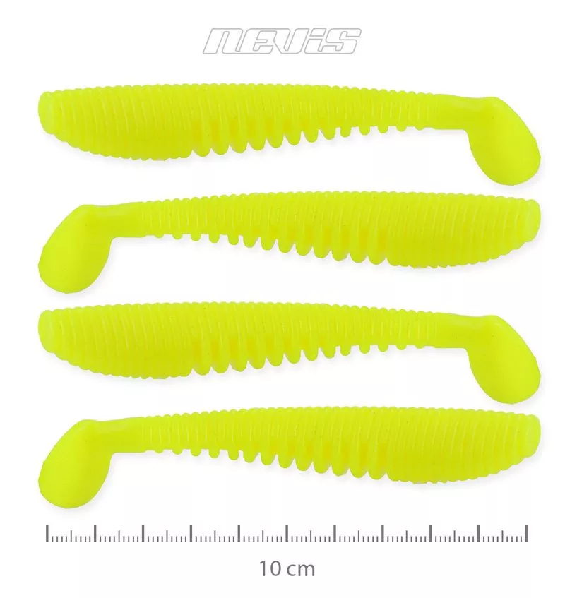 A lágy, de igen tartós szilikon anyag kombinálva a test bordázatával finom rezgéseket kelt a bevontatáskor, ami a passzív ragadozókat is kapásra ingerli.