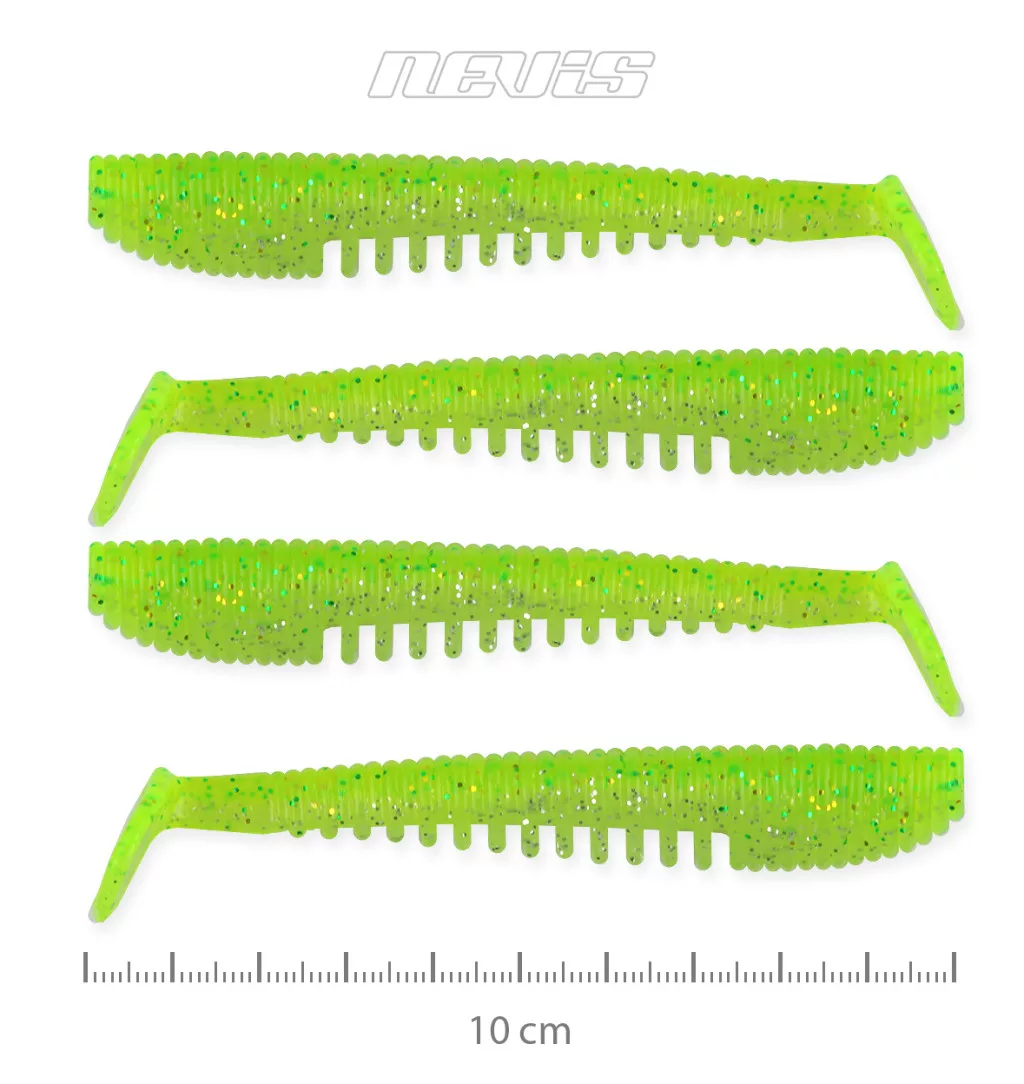 A lágy, de igen tartós szilikon anyag kombinálva a test bordázatával finom rezgéseket kelt a bevontatáskor, ami a passzív ragadozókat is kapásra ingerli.