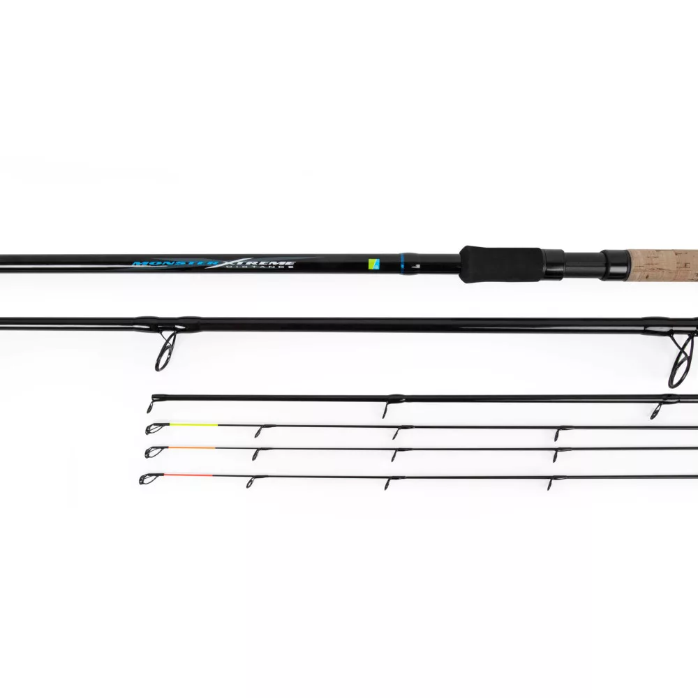 Xtreme a neve extrém a tulajdonsága! A Monster Xtreme Distance botcsaládot úgy fejlesztettük ki hogy nagy méretu etetokosarakkal hatalmas távolságok is elérhetoek legyenek vele ami ideális fárasztási tulajdonságokkal párosul.Mindhárom modell eros bottestre épített amelyek könnyedén képesek 100 m fölé juttatni az etetokosarakat miközben megmarad a lenyugözo hajlékony tulajdonság. Ideális választásnak bizonyulnak a gyors áramlású folyókon is ahol például a márna lehet a célhal.Távdobásra kifejlesztett Seaguide gyuruk a gyönyöru kinézetu spicctag és szintén a távdobást segíto hosszú botnyél minden modellen megtalálhatók.Monster Xtreme Distance 3.8mA kínálat legrövidebb botja. Ez a bot ideálisan alkalmas akár 120 m0es dobótávolságra is. Eros bottesttel rendelkezik ami nélkülözhetetlen a távoli horgászathoz pontyra és más keményen küzdo halakhoz ajánlott.3 4 és 6 unciás spiccel szállítjuk.Dobósúly 150gMonster Xtreme Distance 4.0mEnnek a botnak a 4 méteres hossza tökéletes választás a legkülönfélébb helyzetekhez legyen szó akár 140 méteres távolságok megdobásáról vagy nehéz etetokosárral való horgászatról gyorsan áramló vízben. Ez a bot mindezt könnyedén teljesíti! Nagyszeru „univerzális” bot mindenkinek aki a nagy halakat célozza meg nagy kosárral nagy távolságról.3 4 és 6 unciás spiccel szállítva.Dobósúly 180gMonster Xtreme Distance 42mA kínálat leghosszabb botja amit igazi fenevadnak is hívhatunk! A 200 g0os dobósúlyával ez a bot a tesztek során több mint 160 m0re repítette az etetokosarat ami hihetetlen teljesítmény az árcéduláját tekintve! Azonban nem szabad hogy megtévesszen minket a hatalmas dobóero mivel ez a bot még mindig egy progresszív fárasztási tulajdonsággal rendelkezik. A gyors folyókon is ideális a használata mivel a hossza lehetové teszi hogy a zsinórt a víztol távol tartsa.3 4 és 6 unciás spiccel szállítjuk.Dobósúly 200g