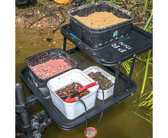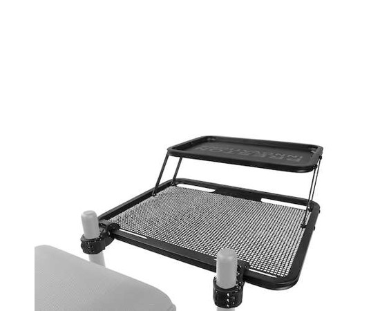 Az ideális oldalsó tálca amely kis méreture elcsomagolható de nagy területet biztosít a horgászat során. Az alsó nagyobb tálca Ventalite anyagból készült és több csalis doboz elhelyezésére alkalmas míg a kisebb felso tálca tömör alumíniumból készült így hasznos kiegészíto csali vagy egyéb eszközök tárolóhelyeként valamint esovédoként szolgál az alsó tálca számára horgászat közben.A Double Decker oldalsó tálca nagyobb változata amelyet két extra eros csuklóval támaszkodik meg. A két tálcának köszönhetoen rengeteg hely van a csalik és a kiegészítok számára miközben a tálca a szállításhoz még mindig sokkal kisebb alapterületure hajtható össze.