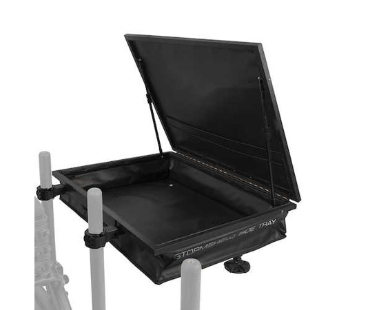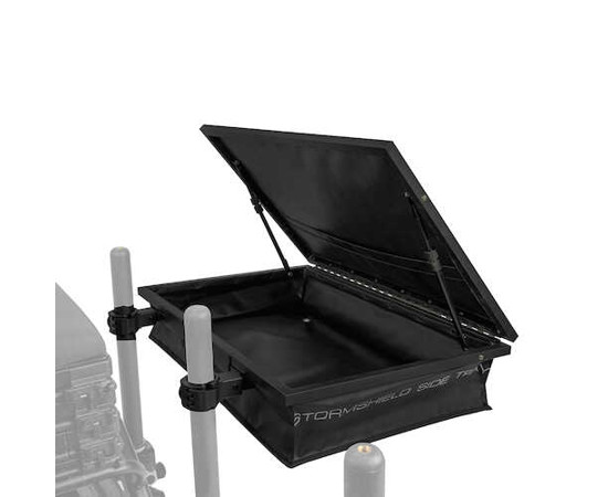 A standard Stormshield Side Tray oldalsó tálca tökéletes választás a feeder horgászok számára. Ennek a népszeru formatervezésnek számos kulcsfontosságú tulajdonsága van amelyek segítségével alapveto termékké válhat.A Stormshield a népszeru OffBox befogópánttal rendelkezik mellyel annyira stabil tartást biztosít hogy nincs szükség külön támasztólábra. Ha mégis szeretnénk külso lábat használni az oldalsó tálcához tartózó csuklós pánttal könnyedén csatlakoztatható nem tartozék. A csuklós pántok belso lábbetétekkel vannak ellátva hogy illeszkedjenek a különféle lábméretekhez 23mm 25mm 30mm vagy 36mm betét nélkül. A tároló rekesz belso részében boven van hely a csalis dobozok EVA tároló boxok elhelyezésére míg az emelo fedél belso oldalán lévo zsebek kisebb szerelékes dobozok biztonságos tárolására nyújt lehetoséget. A Stormshield fedél új Twist Grip karokkal rendelkezik így a fedél bármilyen szögben pozícionálható hogy a csalik számára a legjobb védelmet biztosítsunk.Stormshield oldalsó tálca 0 XLAz XL0es változat megegyezo tulajdonságokkal rendelkezik mint a népszeru Stromshield Side Tray oldaltálca standard modellje de még nagyobb helyet biztosít. Ennek a nagyobb méretu tálcának a megtámasztásához a 36mm0es csuklós támasztóláb nyújt segítséget.