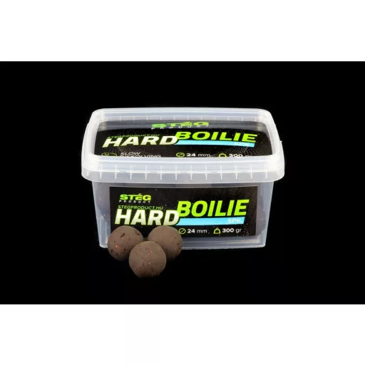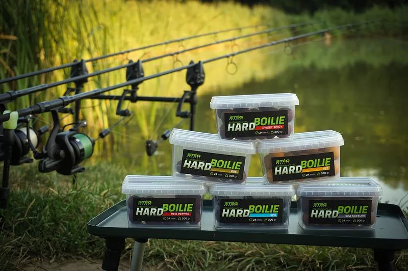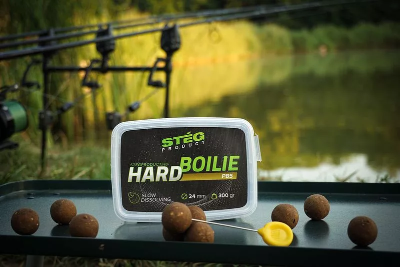 Sok vízterületen jelent problémát, hogy a nagy mennyiségű keszegféle, törpeharcsa, rák a felcsalizott bojlikat megpróbálja leenni a horogról. Ezért hoztuk létre a csalizásra ajánlott HARD BOILIE szériát. Amint neve is mutatja más anyag összetételű mint a többi boilie.