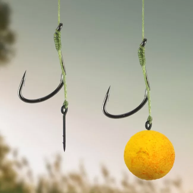 A tüske szárán található két szakáll rögzíti a csalit, így nagyobb dobások esetén is a helyén marad.