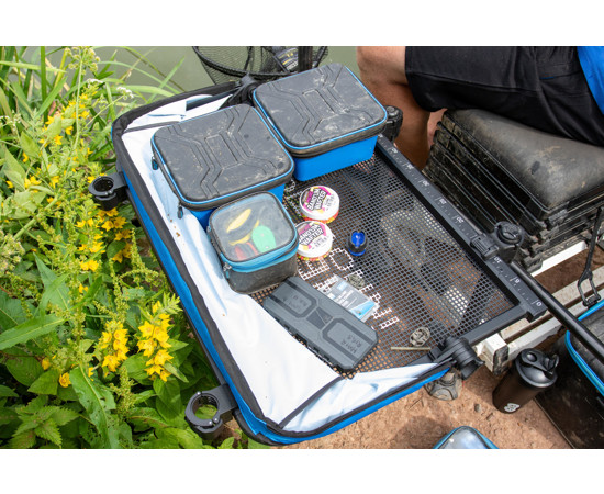 Ideális méret azok számára, akik egy horgászat vagy verseny során nagy mennyiségű etetőanyagot és csalit használnak. Az oldaltálca mérettől függően akár 8 csalis edény elhelyezésére is alkalmas. A Snap-Lok rendszerrel rögzíthető, vízálló és világos színű árnyékoló gyorsan fel- és leszerelhető, valamint hatékonyan visszaveri a nap hőjét. A Ventamesh perforált alj biztosítja a megfelelő szellőzést és a hatékony vízelvezetést, így ez az oldaltálca egész évben praktikus kiegészítő.
