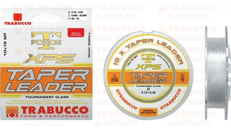 Tökéletes nyúzó megoldás a Trabucco-tól.Már nem kell többé vastag dobóelőke ahoz, hogy nagy távolságokat lehessen elérni!A Taper Leader 10 db 15 mt-es 4 méretben rendelhető kúpos dobóelőke adja a megoldást.A 15m-es dobóelőke vastagabb méreteiben 0,57mm-ről vékonyodik vissza mérettől függően 0,26 mm-re. Így többé nem kell kínlódni a vastag zsinór kellemetlenül nagy csomóival.